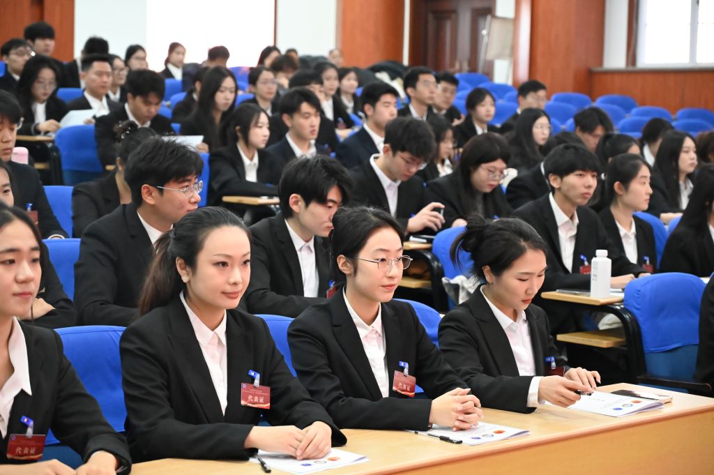 曲明致开幕辞,对大会的顺利召开表示祝贺,向代表们表示诚挚问候和美好祝愿。曲明指出,在过去一年中,法学院学生会和研究生会坚持以习近平新时代中国特色社会主义思想为指导,在学院党委的坚强领导、团委的悉心指导下,用挺膺担当的拼搏精神、踏实肯干的务实态度,圆满完成了各项使命,取得了一系列丰硕成果。他向各位代表和学生会、研究生会全体同学提出三点希望和要求:一是把牢思想引领的掌舵方向,不断增强凝聚青年的向心力;二是强化青春建功的责任担当,不断增强服务大局的贡献力;三是提升抓铁有痕的工作韧劲,不断增强改革前行的创新力。