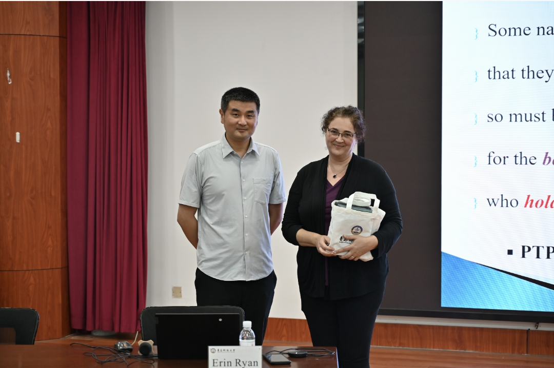 讲座结束后,辛帅代表法学院向Ryan教授赠送纪念品并予以教师节祝福。