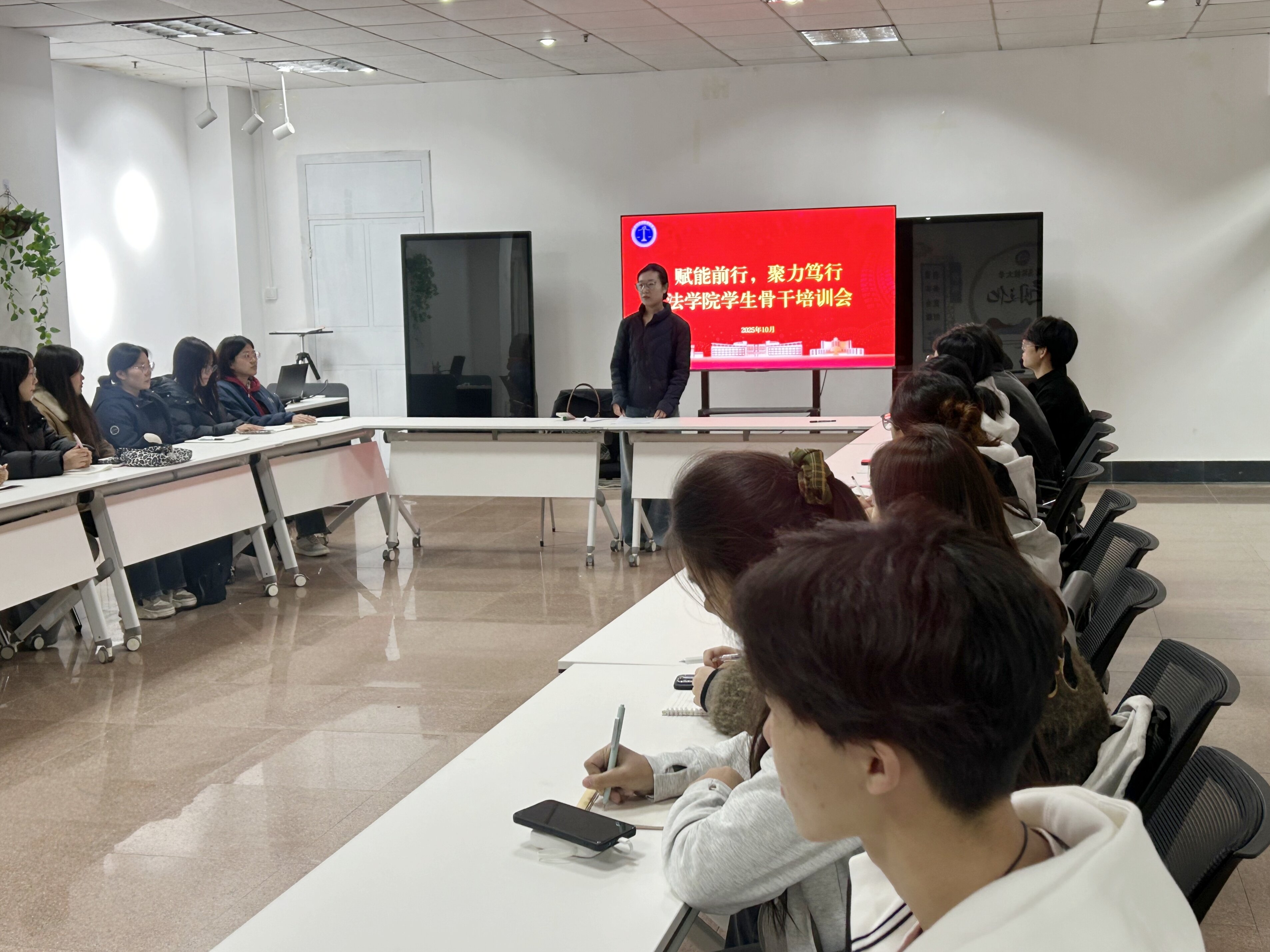 为切实将“全心全意为同学服务” 的宗旨落到实处,全面提升学生骨干综合素养,10月24日,法学院在一站式学生社区成功举办“赋能前行,聚力笃行”学生骨干培训会。法学院辅导员王梦珂担任主讲人,法学院学生骨干代表20余人参与培训,以“赋能” 为抓手,以 “服务” 为核心,为学生骨干队伍注入成长新动能。