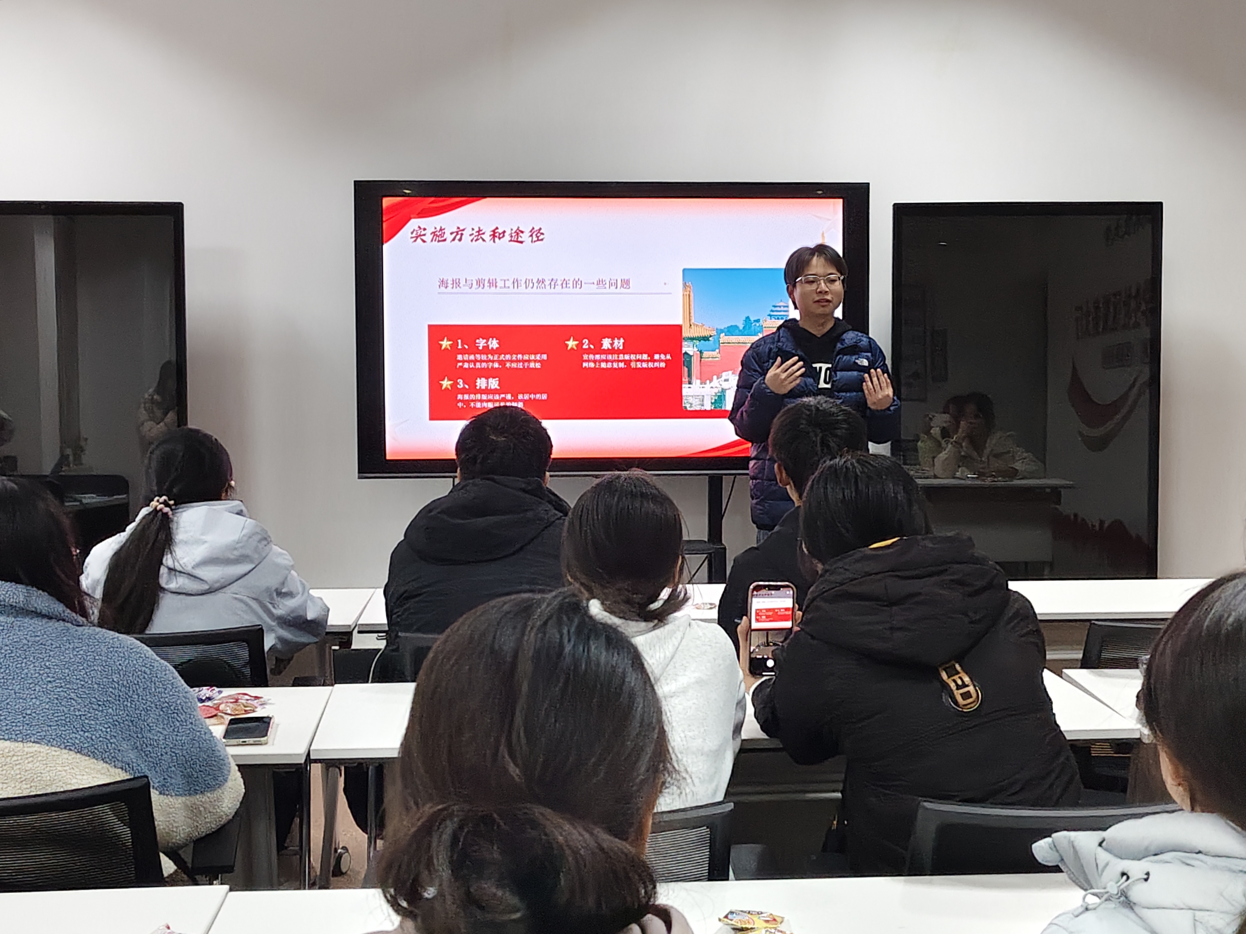 培训聚焦宣传工作的核心技能,采用“理论精讲+案例解析”相结合的模式进行系统教学。主讲人围绕学员日常工作中的实际问题,结合典型案例,详细讲解了相机操作规范、推文排版要点、海报设计原则以及新闻撰写要求等内容,引领同学们在动手实践中深化理解,在互动交流中提升技能,现场学习氛围浓厚。