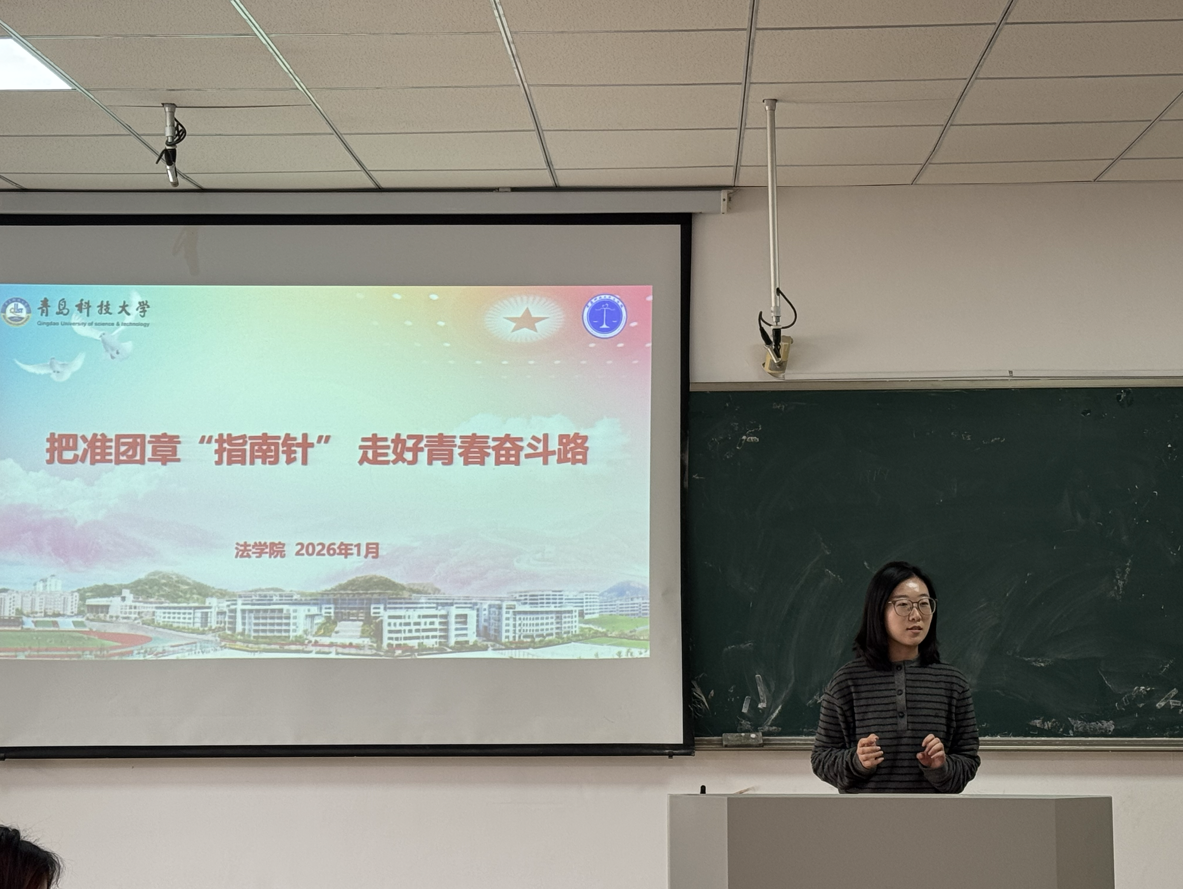 为深入贯彻落实全面从严治团要求,引导入团积极分子端正入团动机,筑牢信仰之基,1月6日,法学院在党团活动室开展“把准团章‘指南针’ 走好青春奋斗路”主题团课。本次团课由法学院团干部王梦珂主讲,全体2025年秋季入团积极分子参与学习。