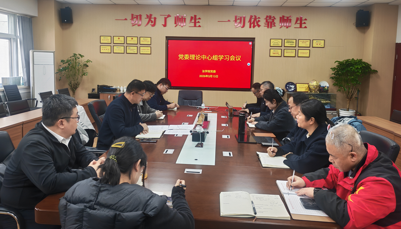 3月13日下午,法学院党委理论学习中心组在弘毅楼C307会议室开展树立和践行正确政绩观学习教育第一次专题学习。中心组全体成员参加学习,学院党委书记曲明主持会议。