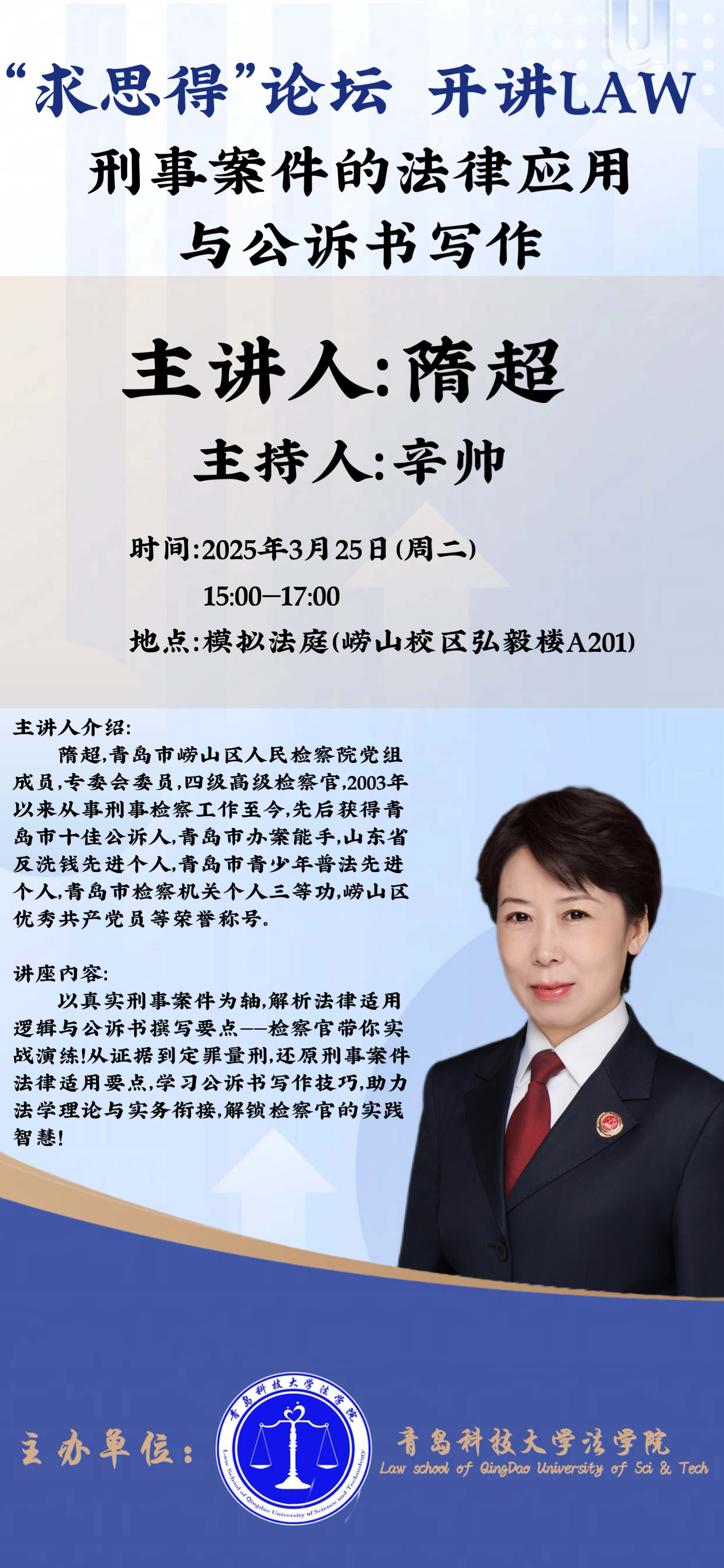 法学院名家大讲堂:刑事案件的法律应用与公诉书写作
